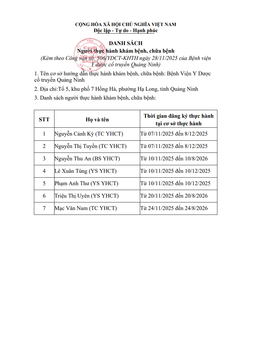 DANH SÁCH THỰC HÀNH KHÁM BỆNH, CHỮA BỆNH
