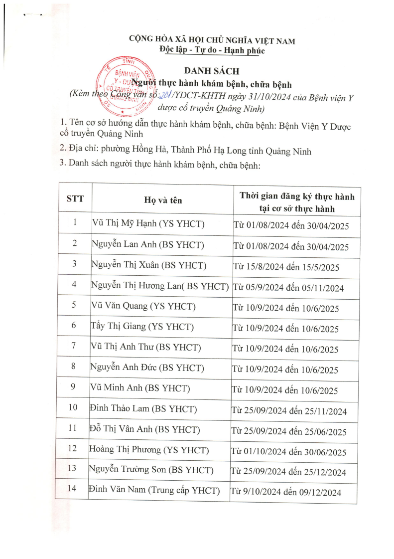 V/v gửi danh sách người thực hành khám bệnh, chữa bệnh tại đơn vị
