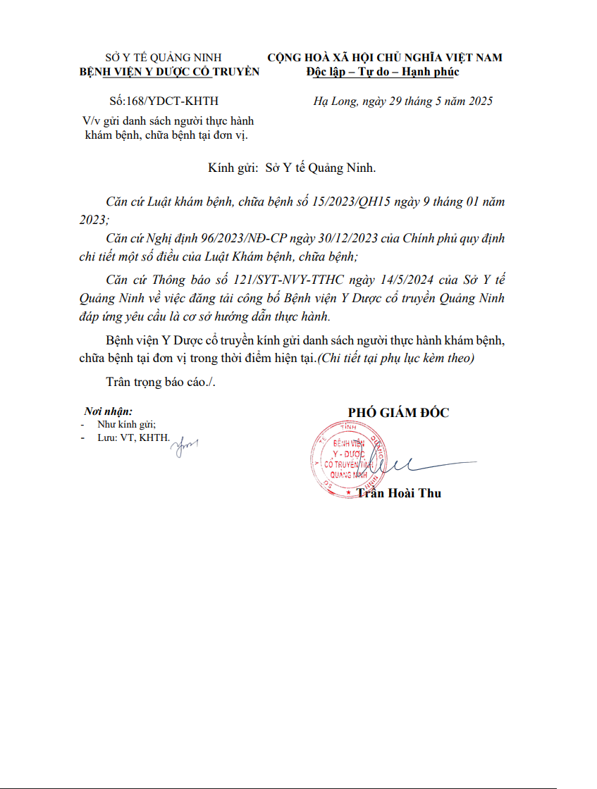 V/v gửi danh sách người thực hành khám bệnh, chữa bệnh tại đơn vị