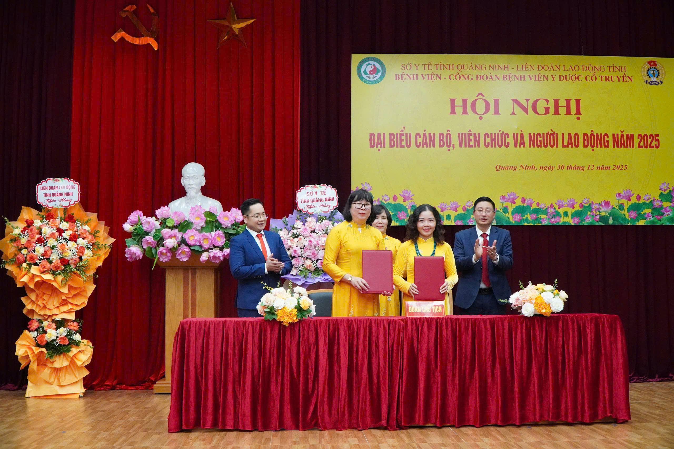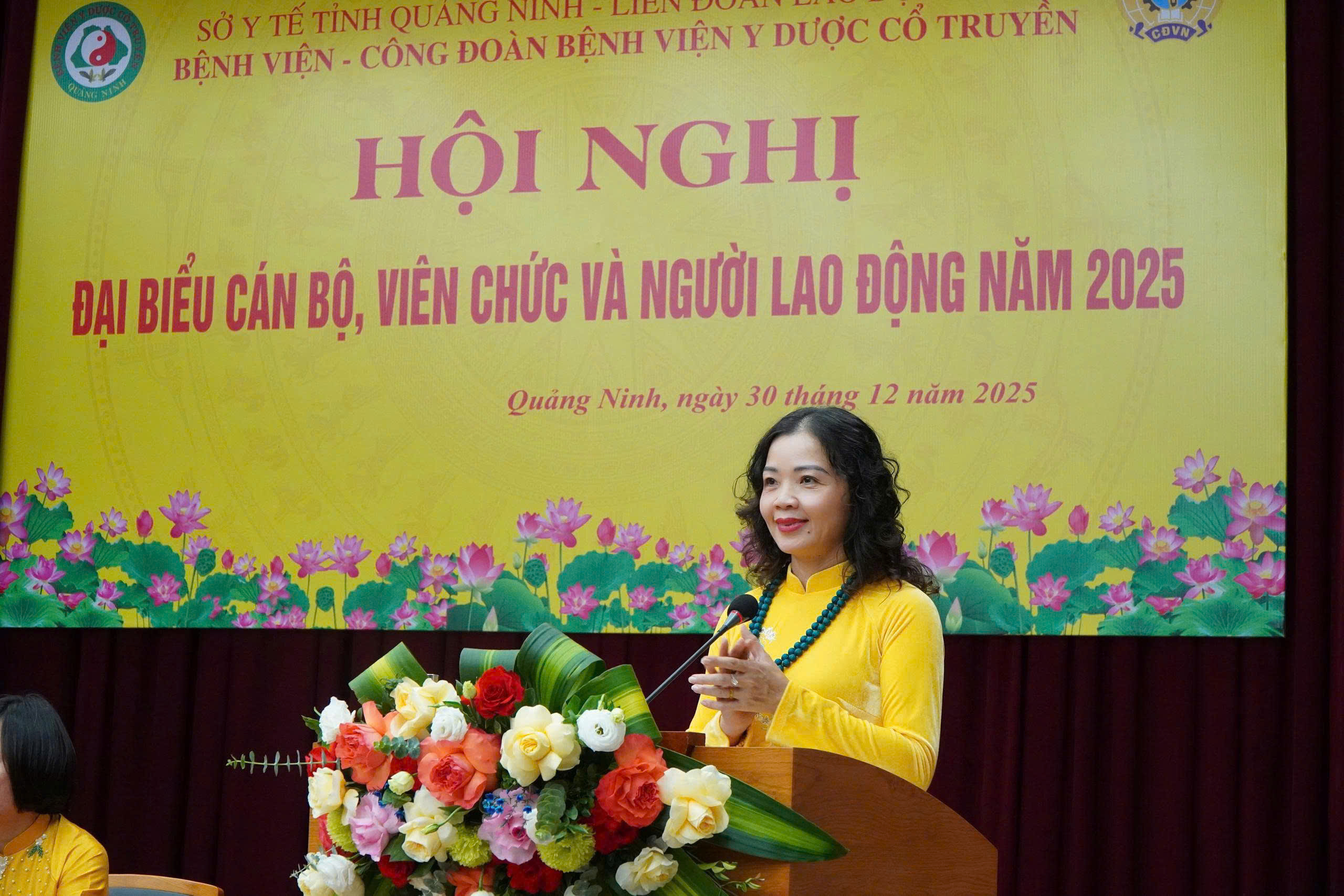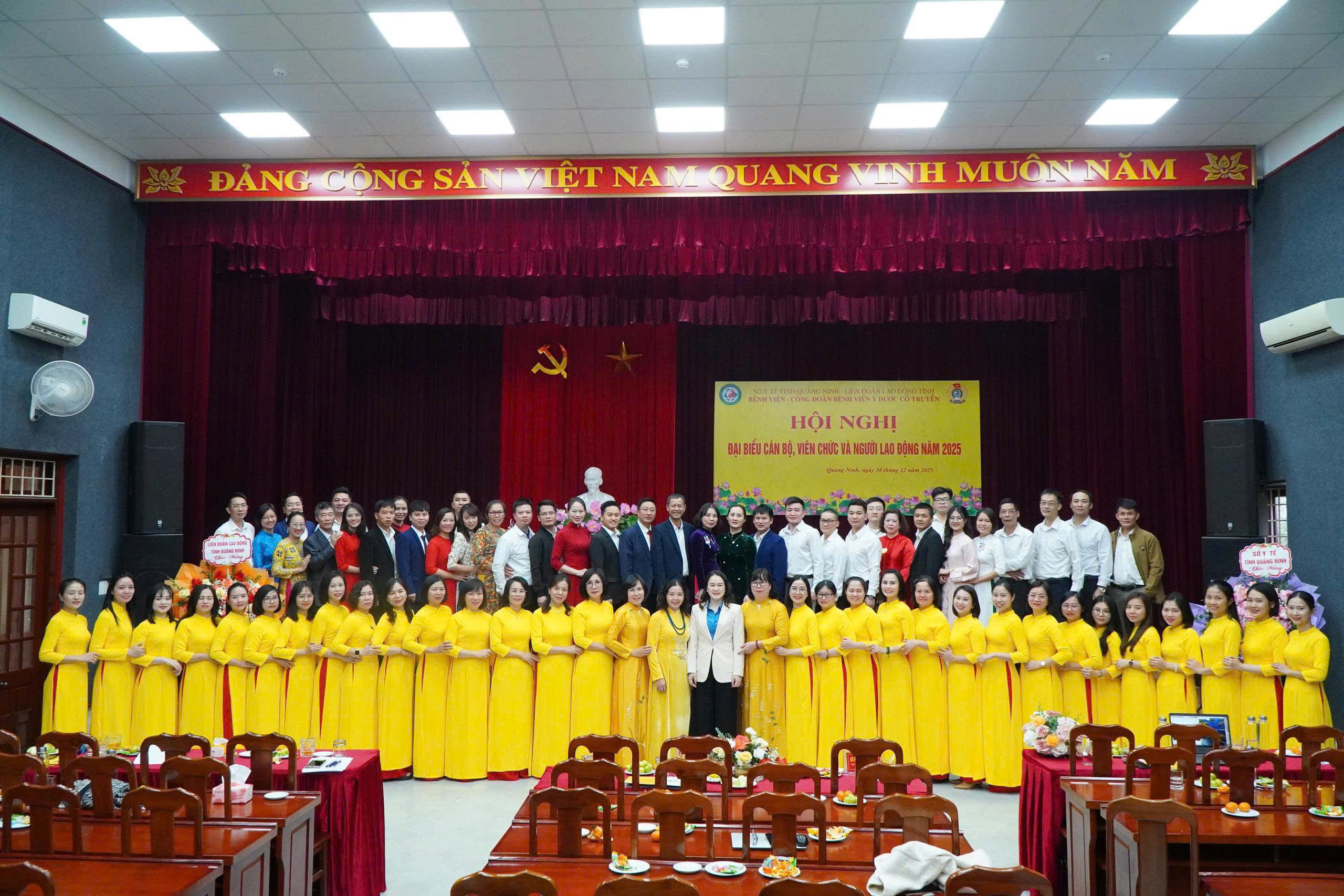 Ngày 30/12/2025, tại Hội trường Bệnh viện Y Dược cổ truyền Quảng Ninh, Bệnh viện đã long trọng tổ chức Hội nghị cán bộ, viên chức, người lao động năm 2025. Hội nghị là hoạt động thường niên có ý nghĩa quan trọng nhằm phát huy dân chủ cơ sở, đánh giá toàn diện kết quả thực hiện nhiệm vụ năm 2025 và đề ra phương hướng, nhiệm vụ năm 2026.