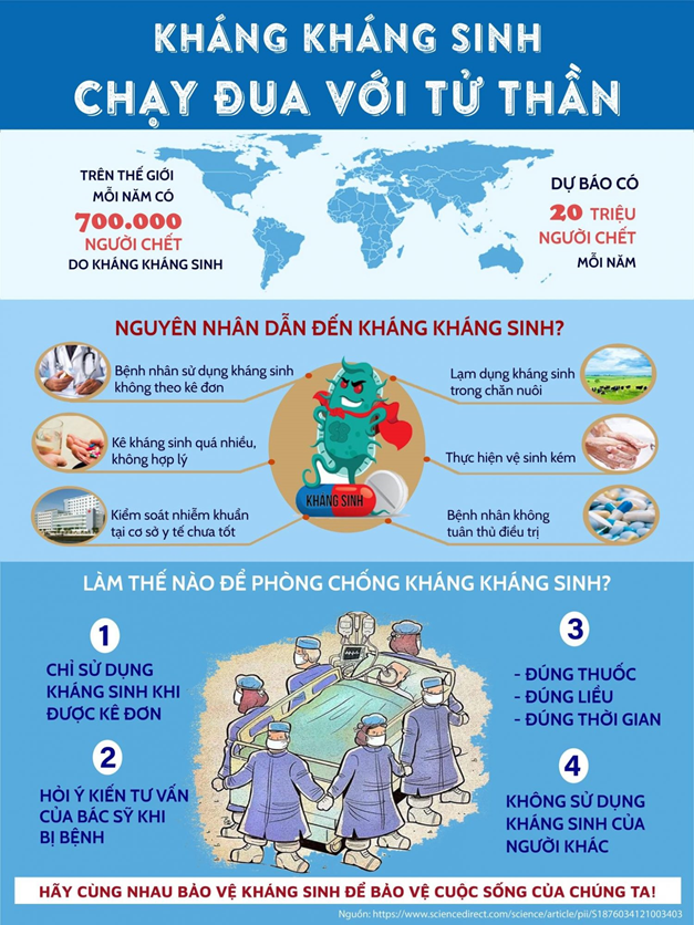 Tình trạng kháng thuốc kháng sinh đang tăng lên mức cao nguy hiểm và báo động ở tất cả các nơi trên thế giới. Các cơ chế kháng thuốc mới đang xuất hiện và lan rộng trên toàn cầu, đe dọa khả năng điều trị các bệnh truyền nhiễm thông thường của chúng ta như viêm phổi, lao, nhiễm độc máu, bệnh lậu và các bệnh lây truyền qua đường thực phẩm…