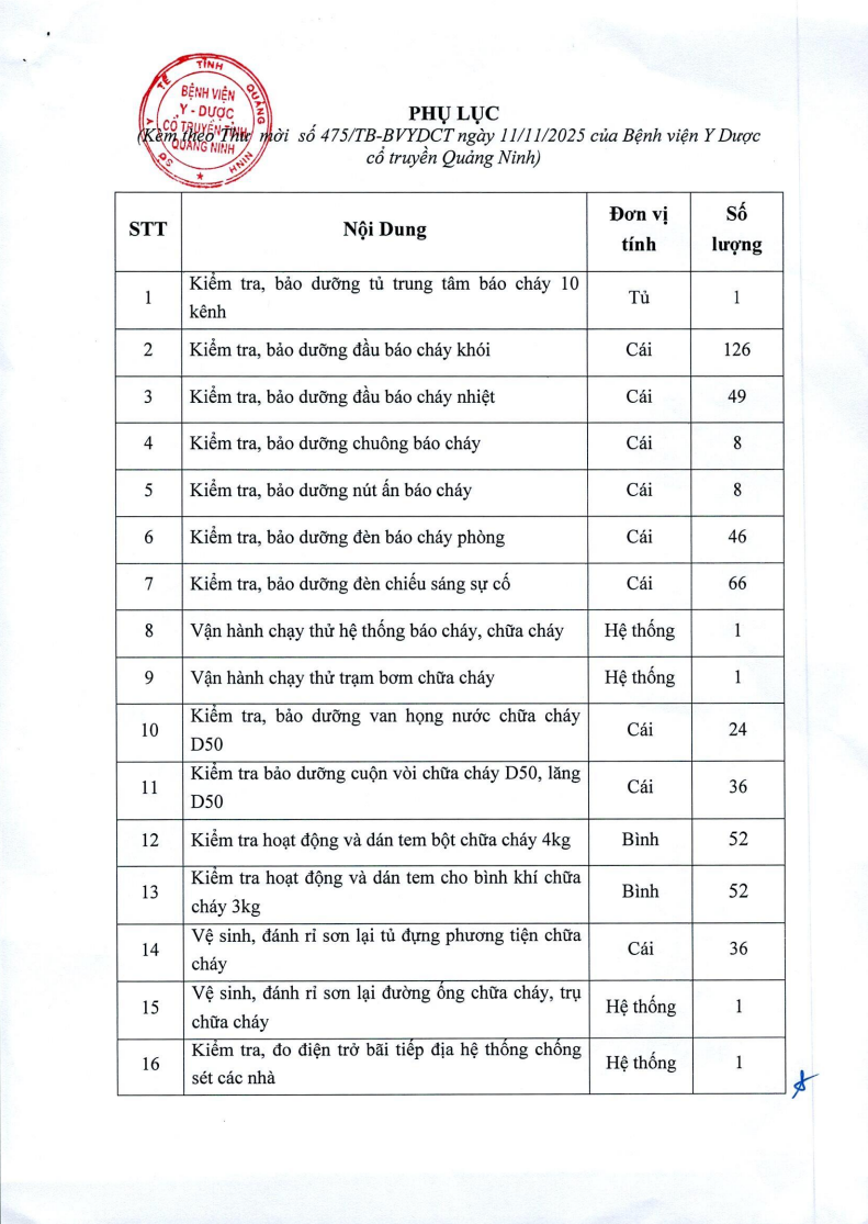 V/v Bảo dưỡng trang thiết bị PCCC năm 2025