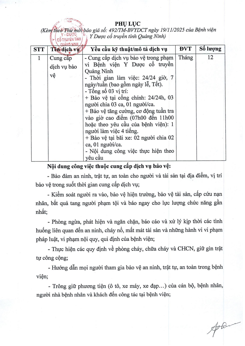 V/v Cung cấp dịch vụ bảo vệ cho Bệnh viện năm 2026