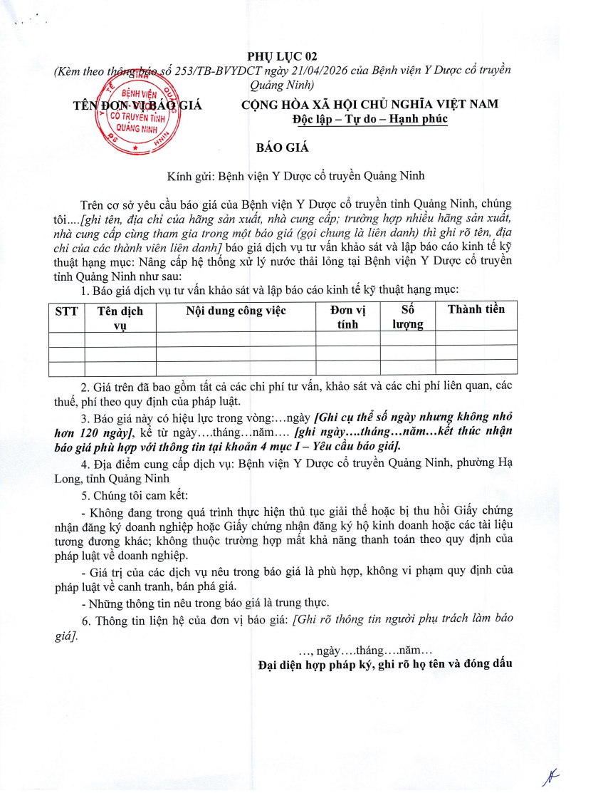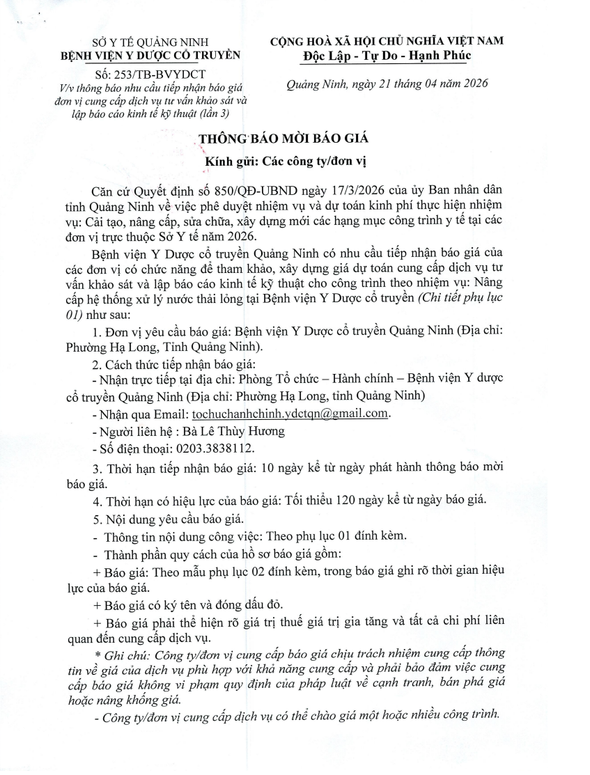 V/v Cung cấp dịch vụ tư vấn khảo sát và lập báo cáo kinh tế ky thuật
